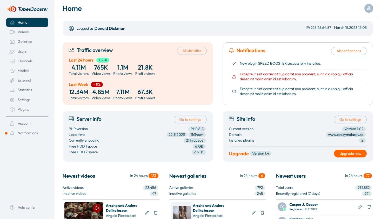 Tubes Booster is a video content management system (CMS) designed specifically for optimizing tube sites, which are video-sharing platforms. It focuses on streamlining content management, offering both an attractive frontend for visitors and a feature-rich backend for admins. The backend is designed to be user-friendly, requiring no coding knowledge. Tubes Booster aims to improve site efficiency and maximize earnings from video content.