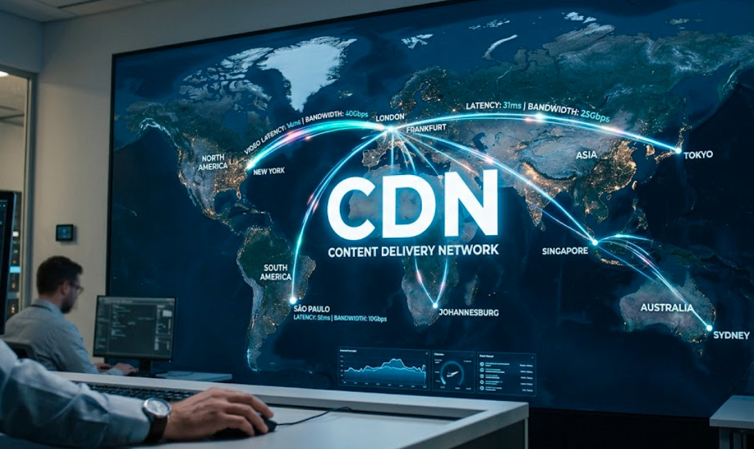 From a technical perspective, a CDN acts as an intelligent layer between the server and the user. Videos are first stored on an origin server, then replicated and cached across globally distributed edge servers. When a user starts playback, the system automatically selects the nearest server and delivers the content from there.